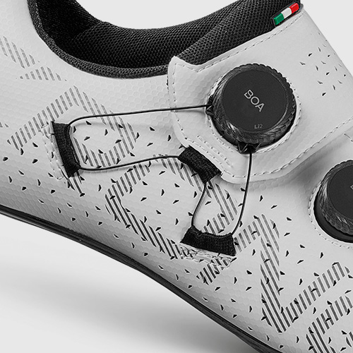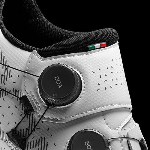 Combinato con la flessibilità del sistema BOA®, il ciclista può regolare con precisione la tensione durante tutta la pedalata, seguendo i naturali cambiamenti di forma e volume del piede, per garantire performance costanti.